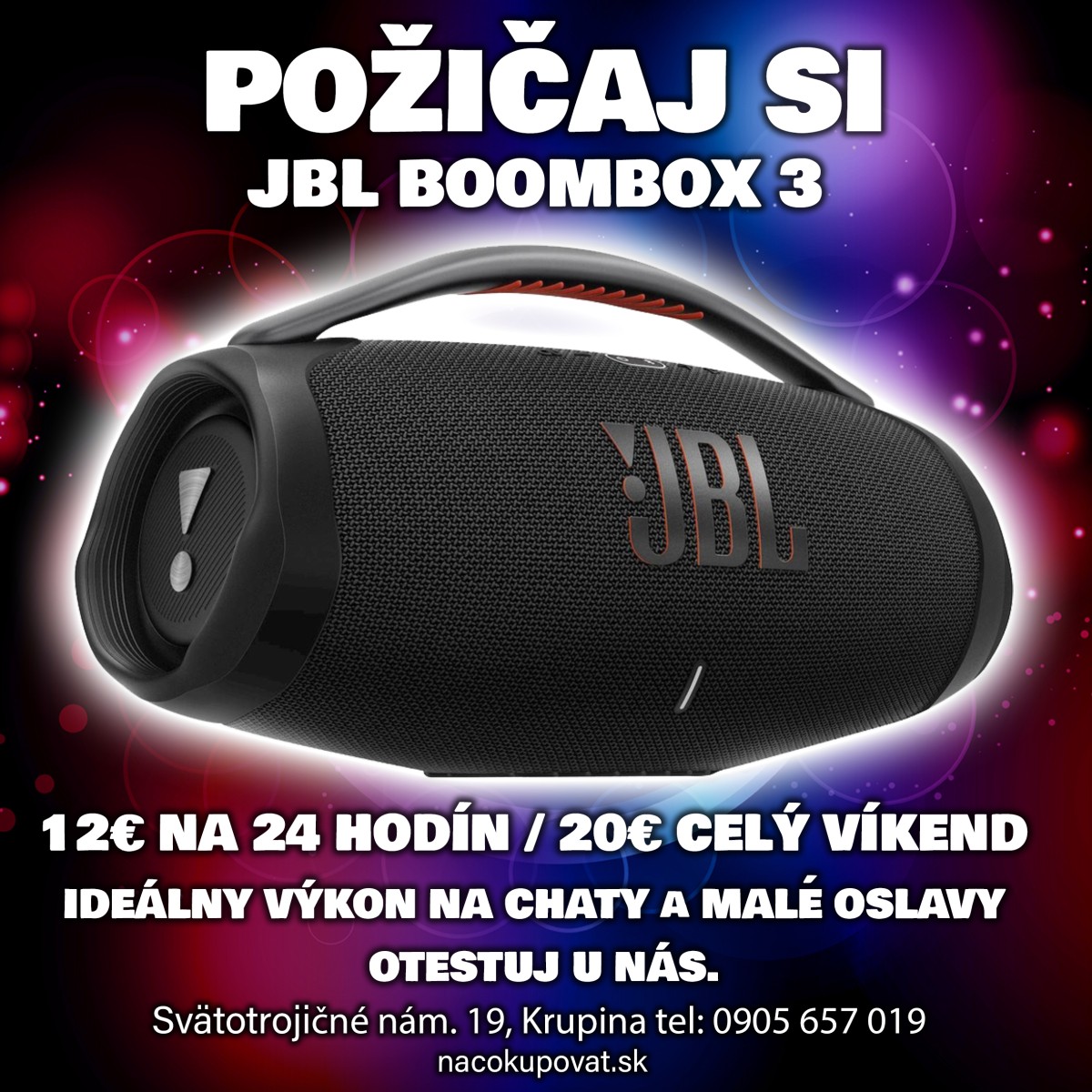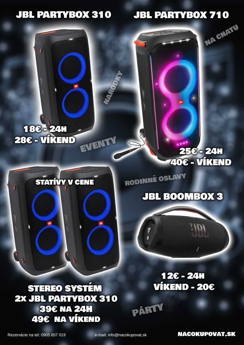 Pre viac informácii o dostupnosti JBL PARTYBOX 310 a JBL BOOMBOX 3 nás prosím kontaktujte na e-mail: